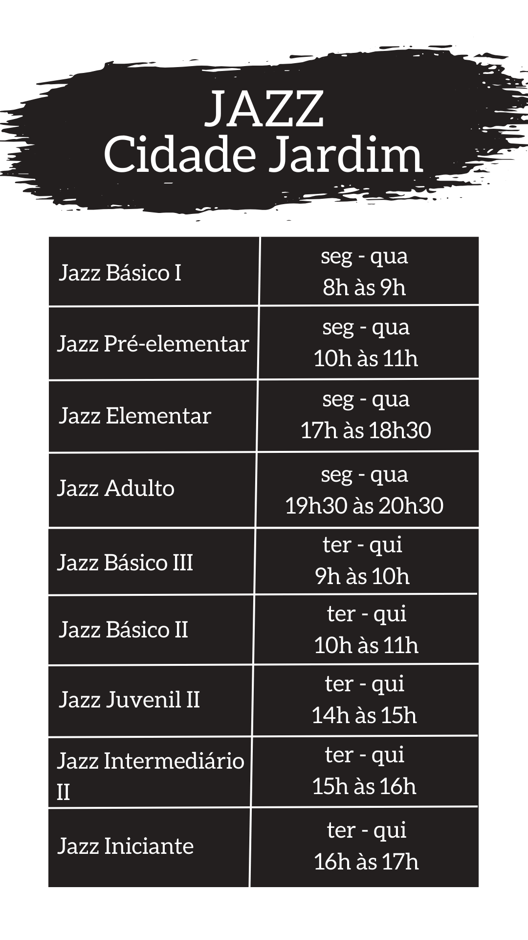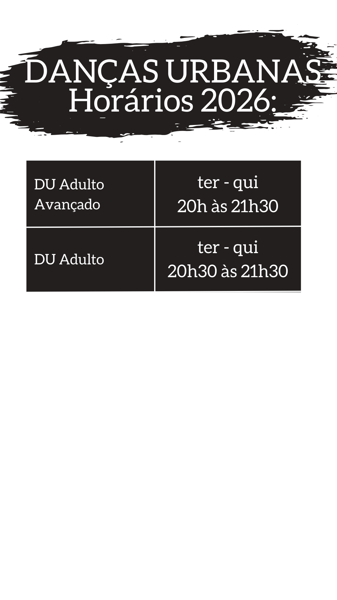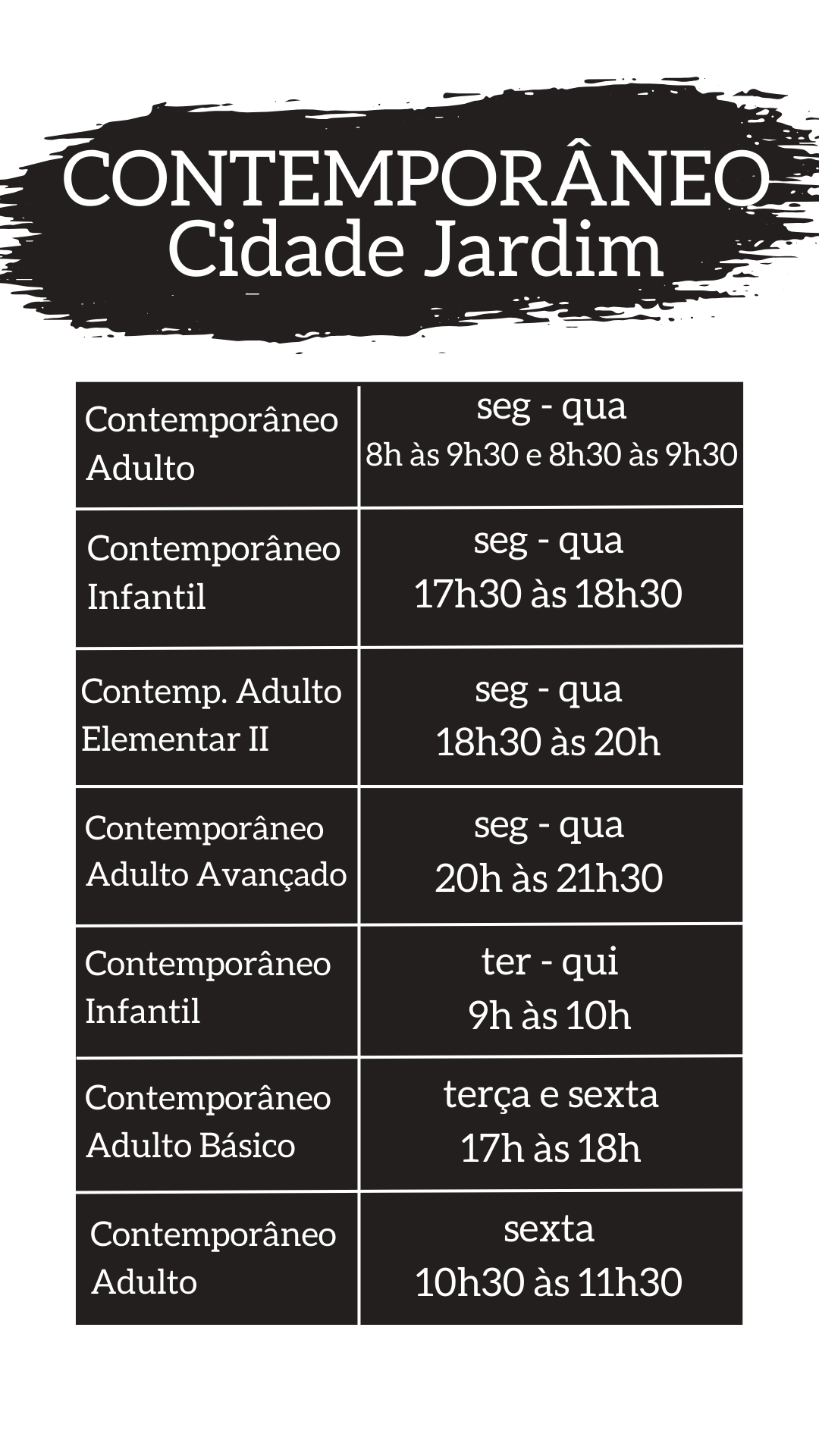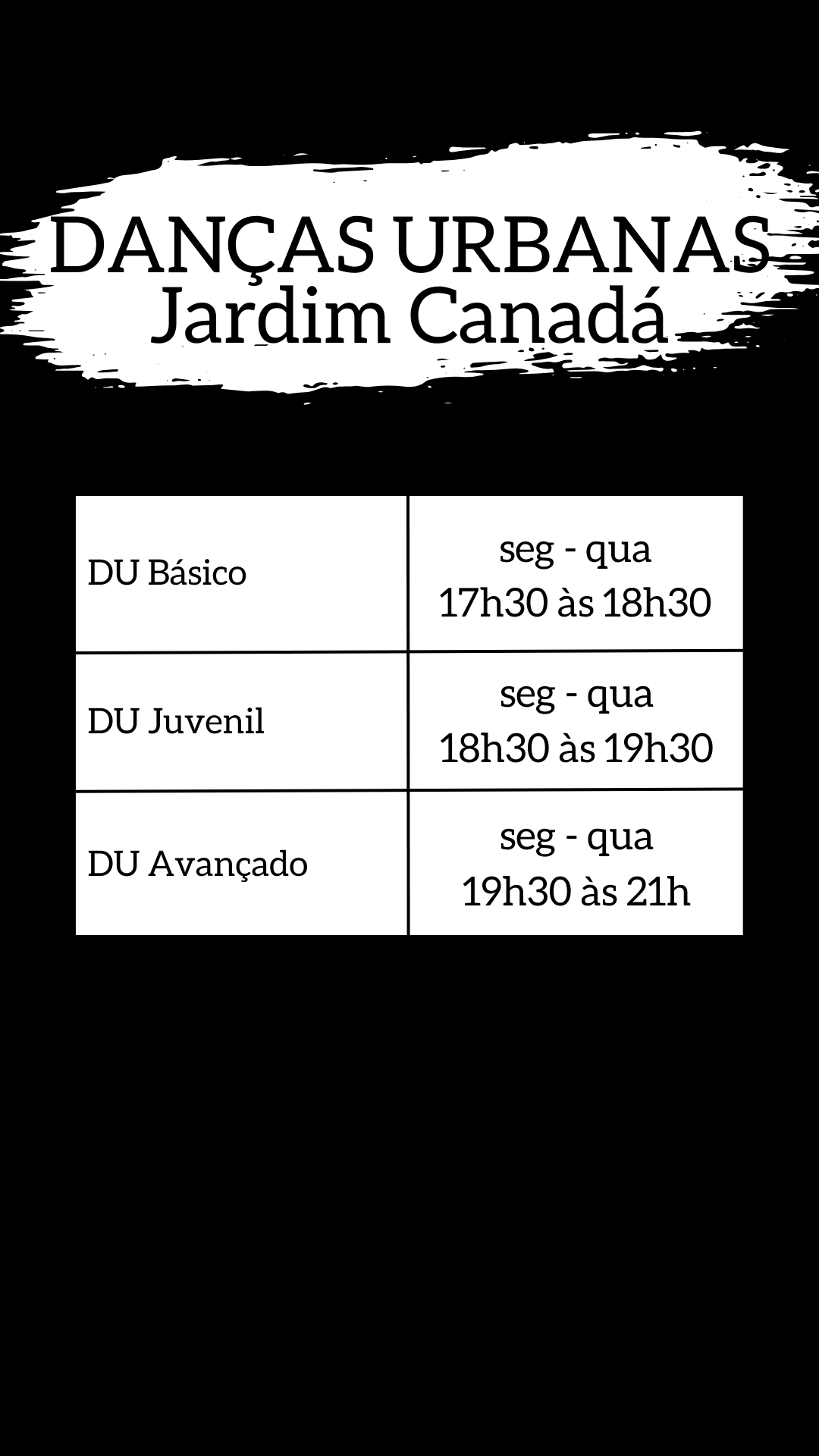 Terça e quinta de 17h as 20h30
