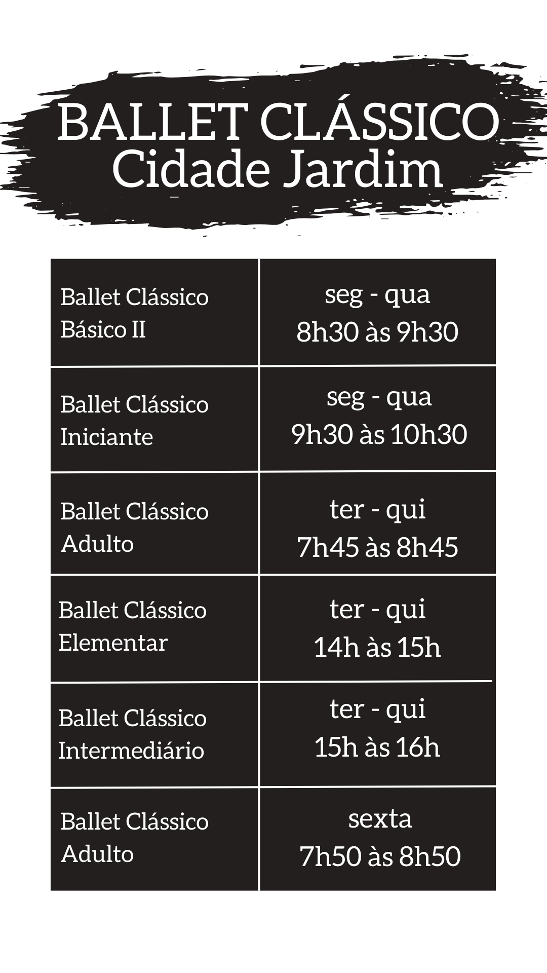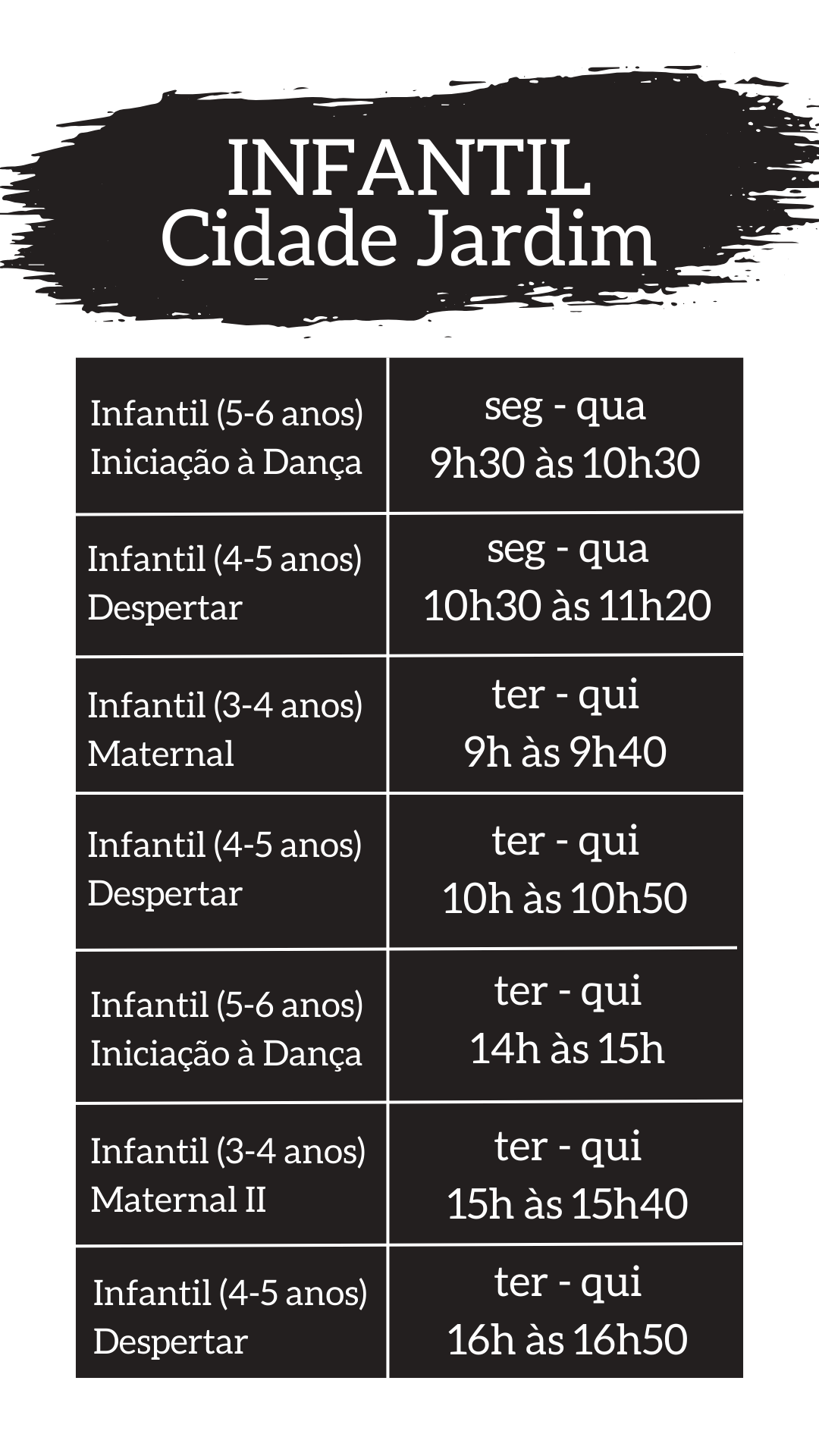No Primeiro Ato as turmas vão desde os níveis iniciante/básico, passando pelo elementar e intermediário, até chegar ao avançado. No Infantil, iniciamos pelo Maternal, seguido do Despertar até o Iniciação à Dança. Você ou a criança podem fazer uma aula experimental do que desejarem. Para isso, precisamos que você entre na aba abaixo (faça uma aula experimental) preencha e envie os dados solicitados. Caso já tenha experiência em aulas regulares de dança ou outras experiências na área, favor especificar. Para mais informações ou dúvidas é possível falar direto com a secretaria ou coordenação por email, telefone ou no Instagram.